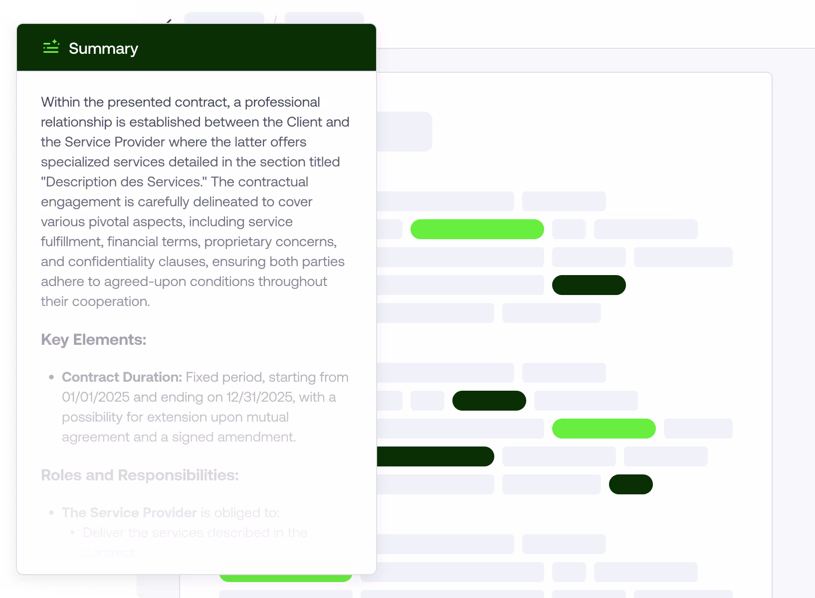Oro analyzes your contracts and extracts the essential data in a matter of seconds.